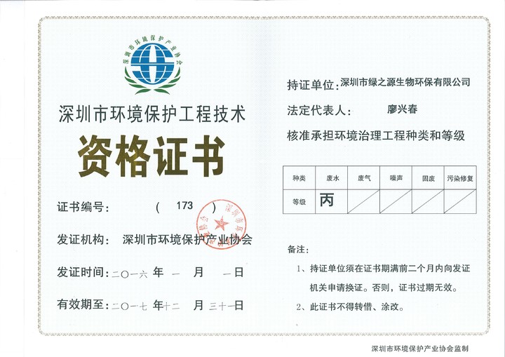 深圳市綠之源生物環保有限公司成立十余年,是經深圳市環保局批準的具有專項環保工程設計資質的企業,深圳市高新技術企業。公司從創立初期的水處理藥劑、水處理設備的研發,逐步成長為環保類綜合性服務的企業,目前年營業額約三千萬,集水處理藥劑研發,工業廢水、廢氣及農村生活污水處理等環保工程的設計、安裝、調試、運營、技術咨詢一條龍服務,為珠三角眾多企業服務,解決相關環保難題,并取得了良好的社會效益和環境效益。